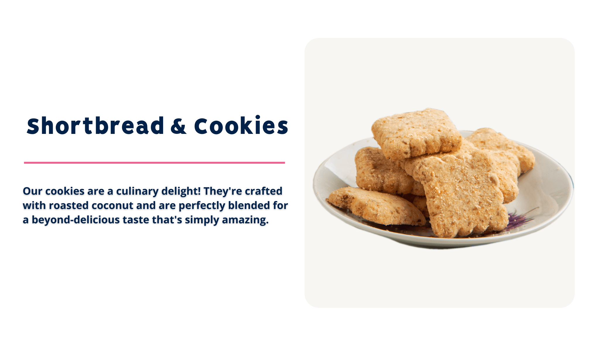 Our cookies are a culinary delight! They’re crafted with roasted coconut and are perfectly blended for a beyond-delicious taste that’s simply amazing.