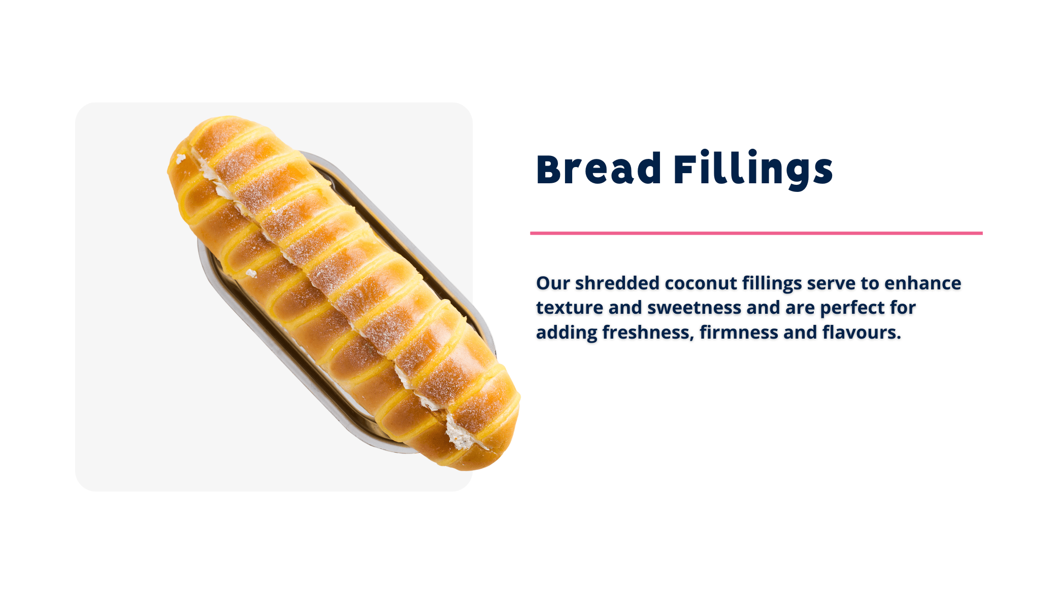 Our shredded coconut fillings serve to enhance texture and sweetness and are perfect for adding freshness, firmness and flavours.