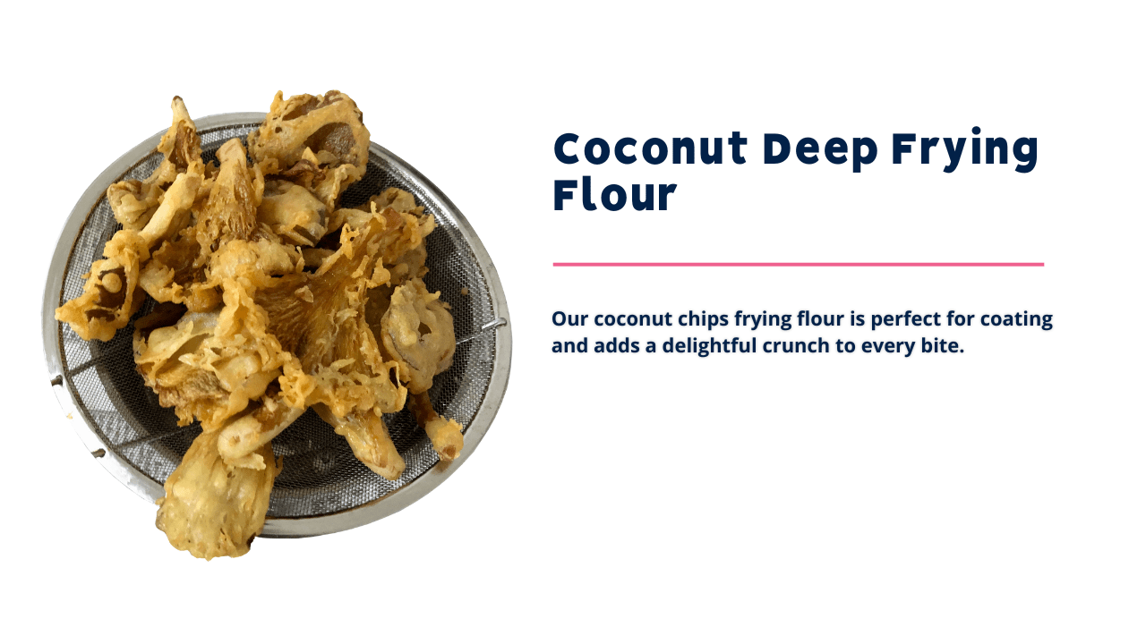Our coconut chips frying flour is perfect for coating and adds a delightful crunch to every bite.